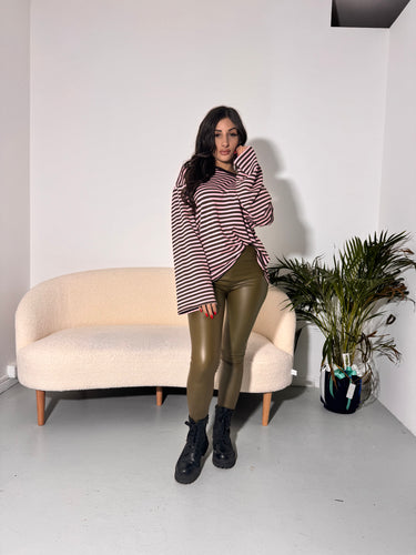 Maxy maglia a righe in morbido tessuto elasticizzato, con maniche ampie e taglio leggermente oversize che dona comfort e stile.