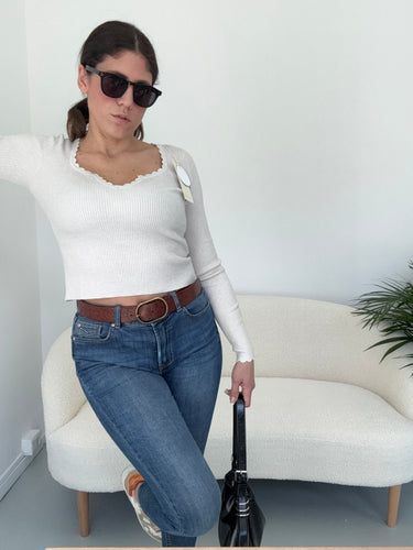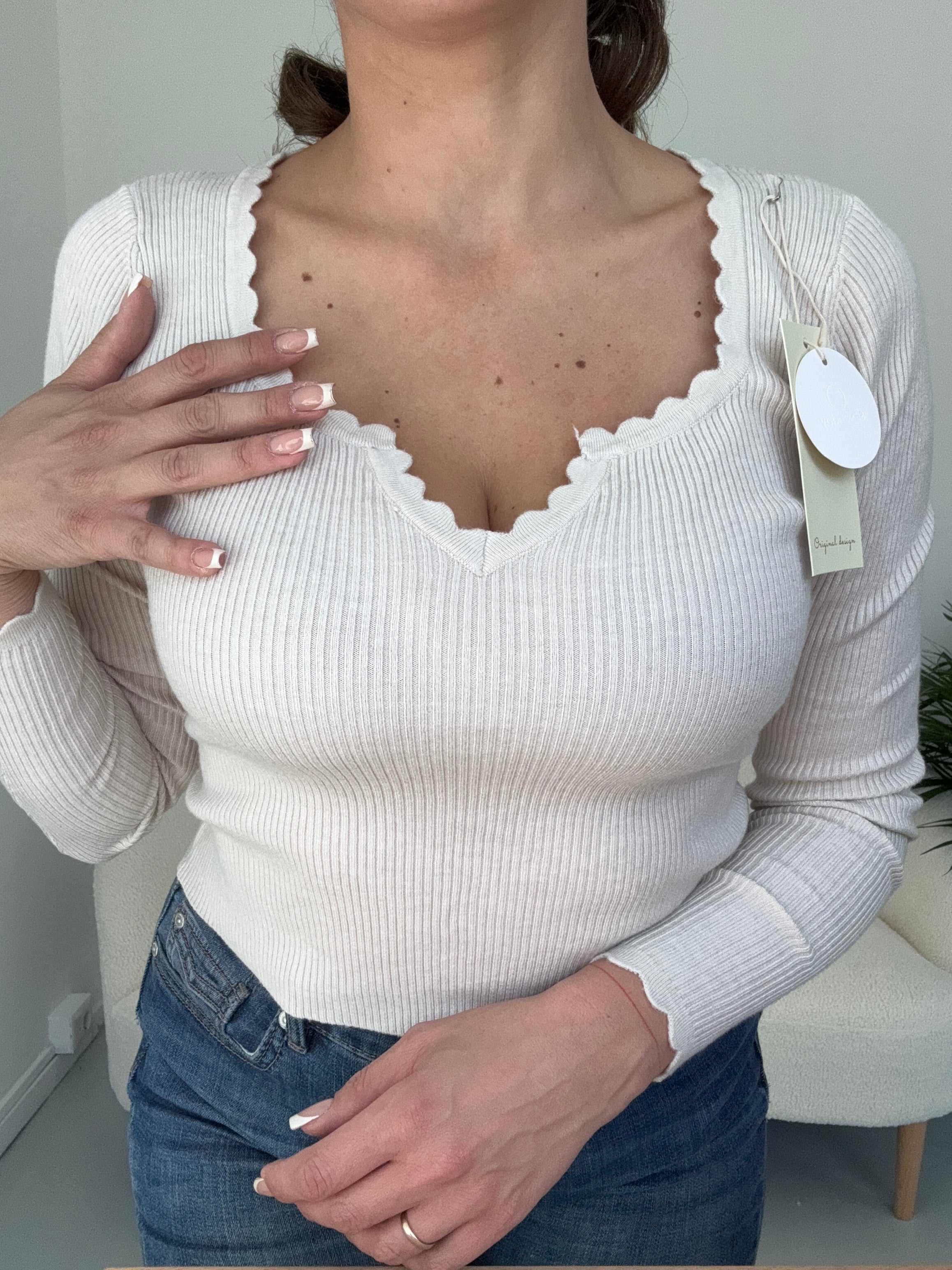 Scollo a V con bordino ondulato.