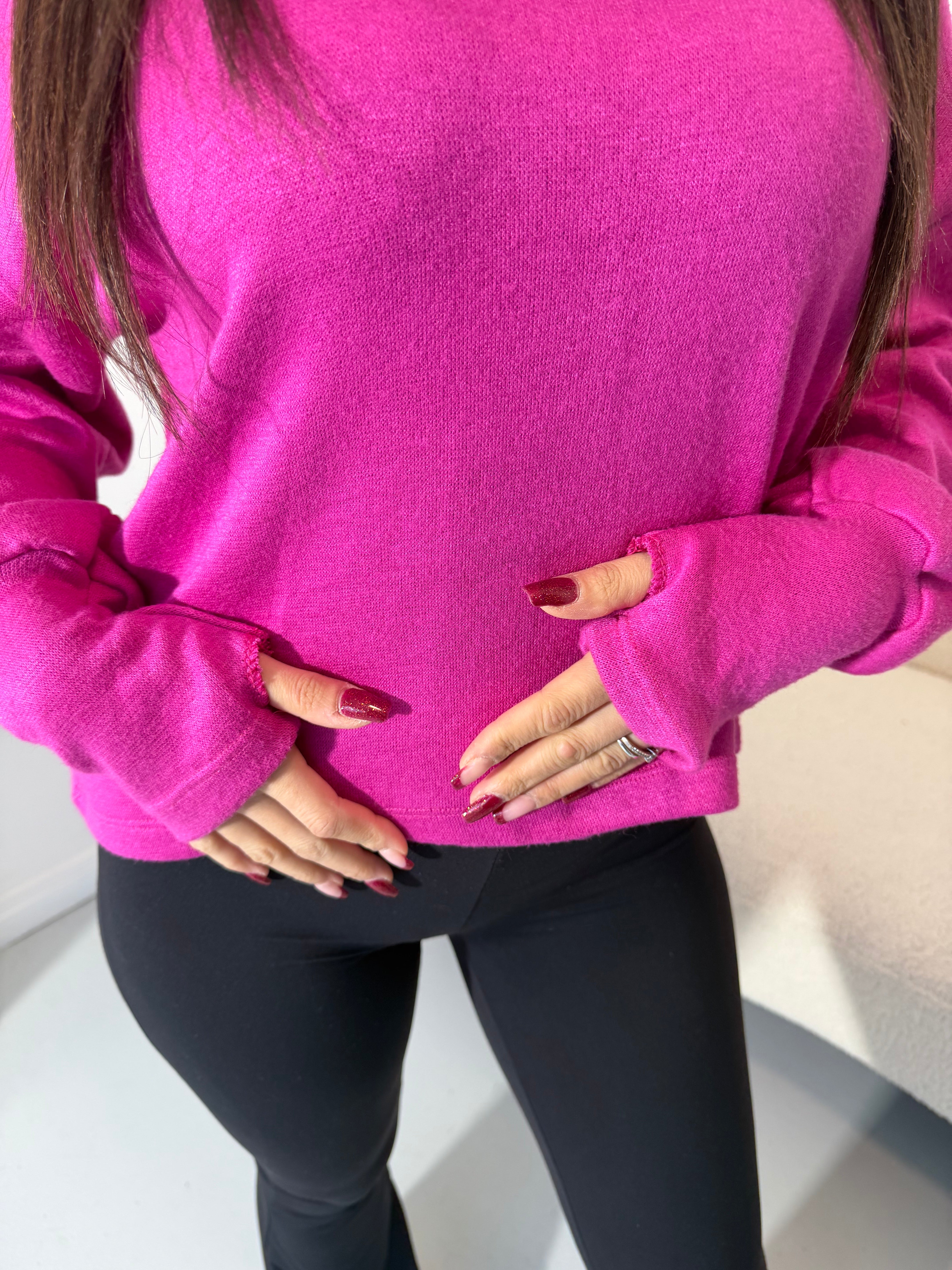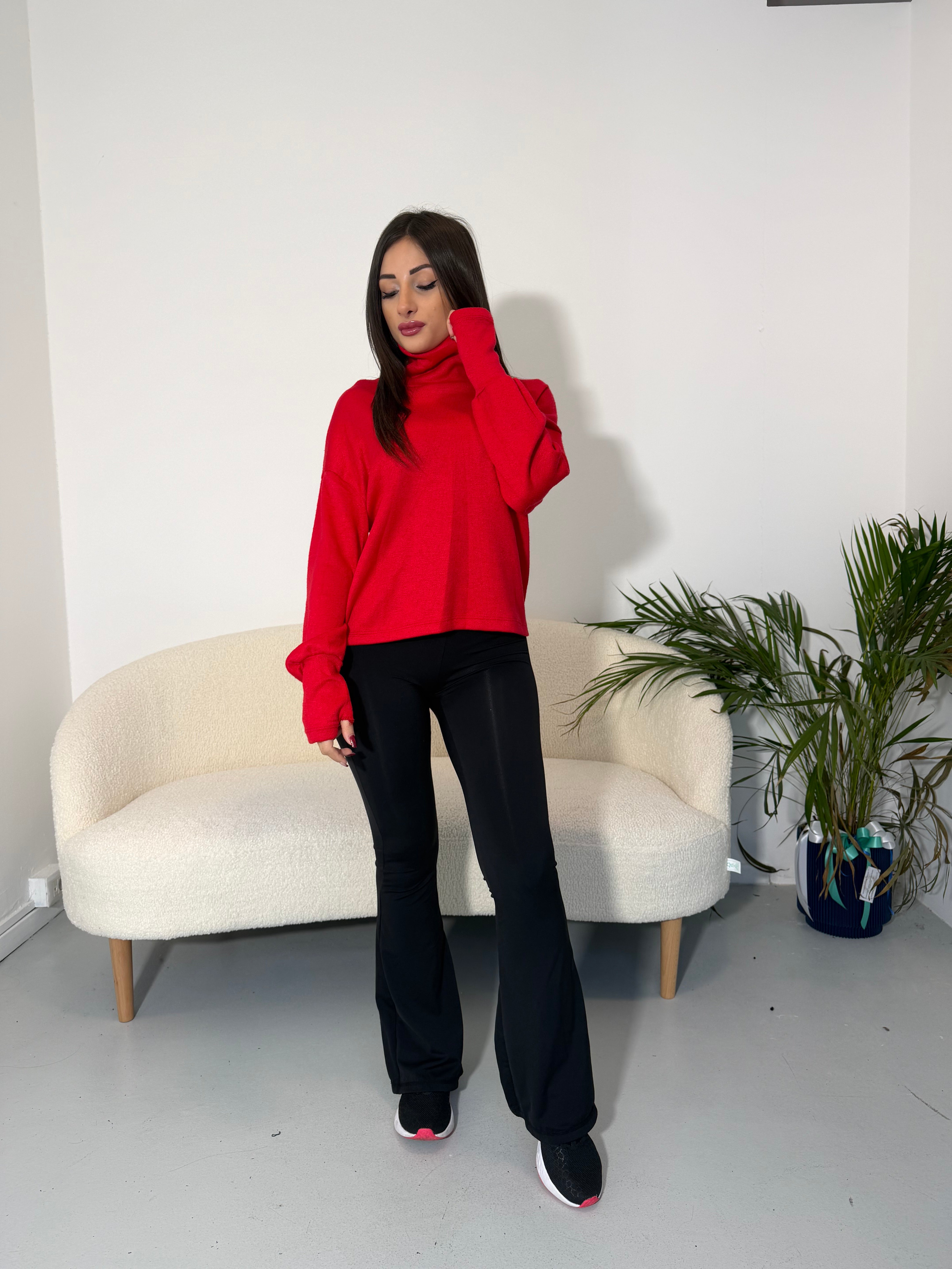 Morbido, caldo e super scenico, presenta collo alto e maniche a guanto.