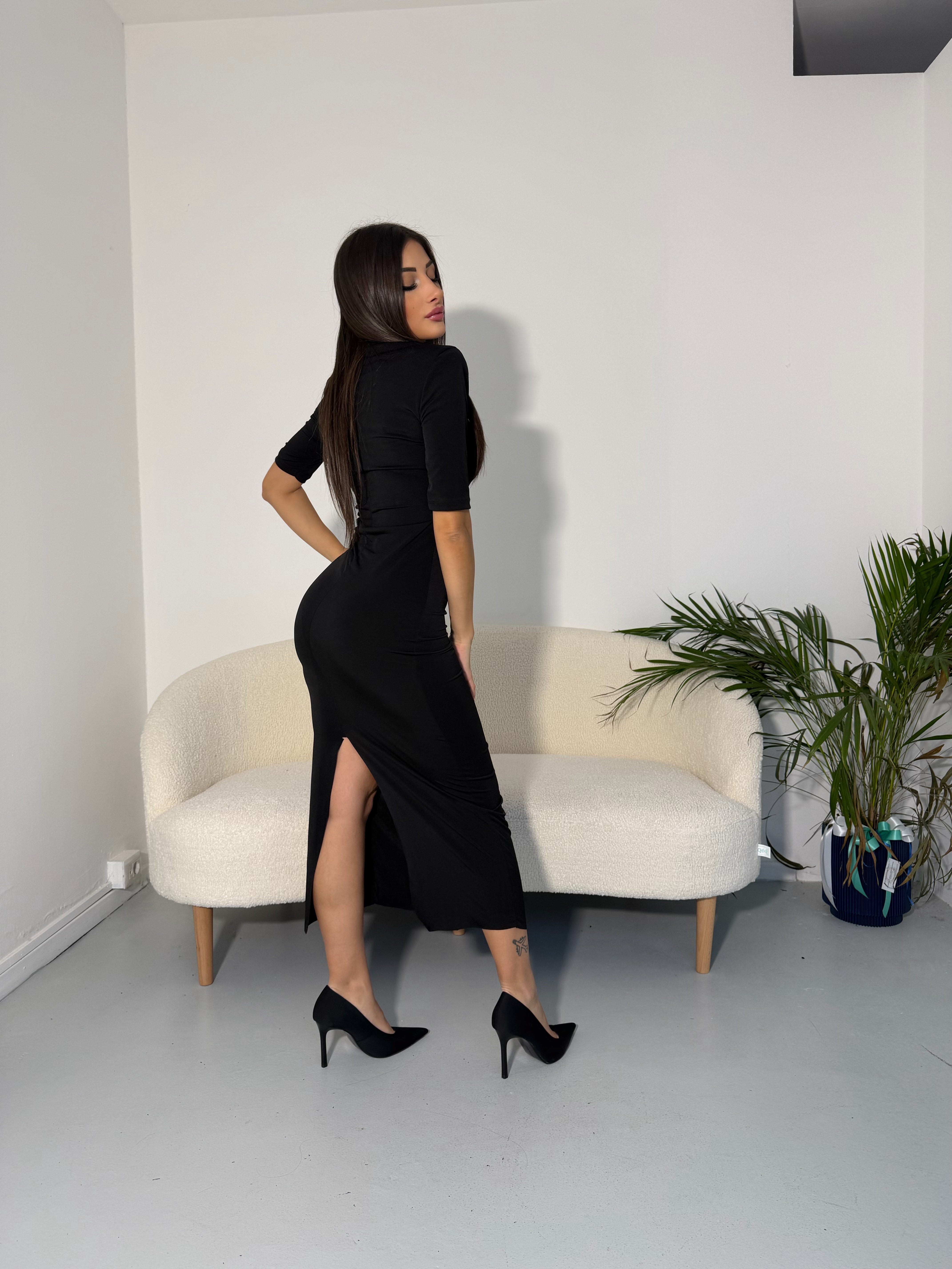 Abito lungo aderente dal design minimal e ultra femminile.