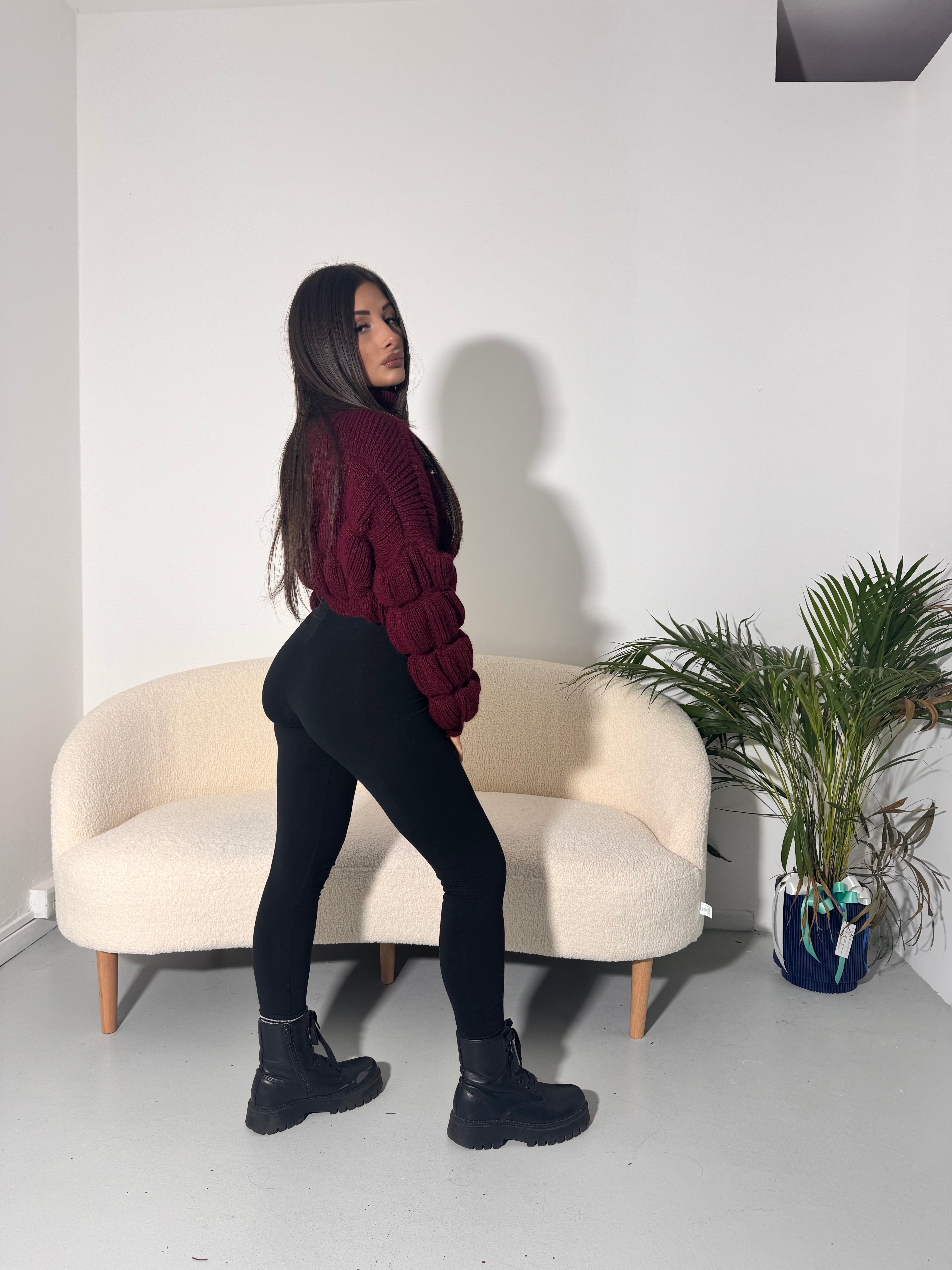 Morbido, caldo e super particolare grazie alle maniche a palloncino lavorate a maglia, dona un effetto voluminoso e fashion che valorizza ogni outfit.